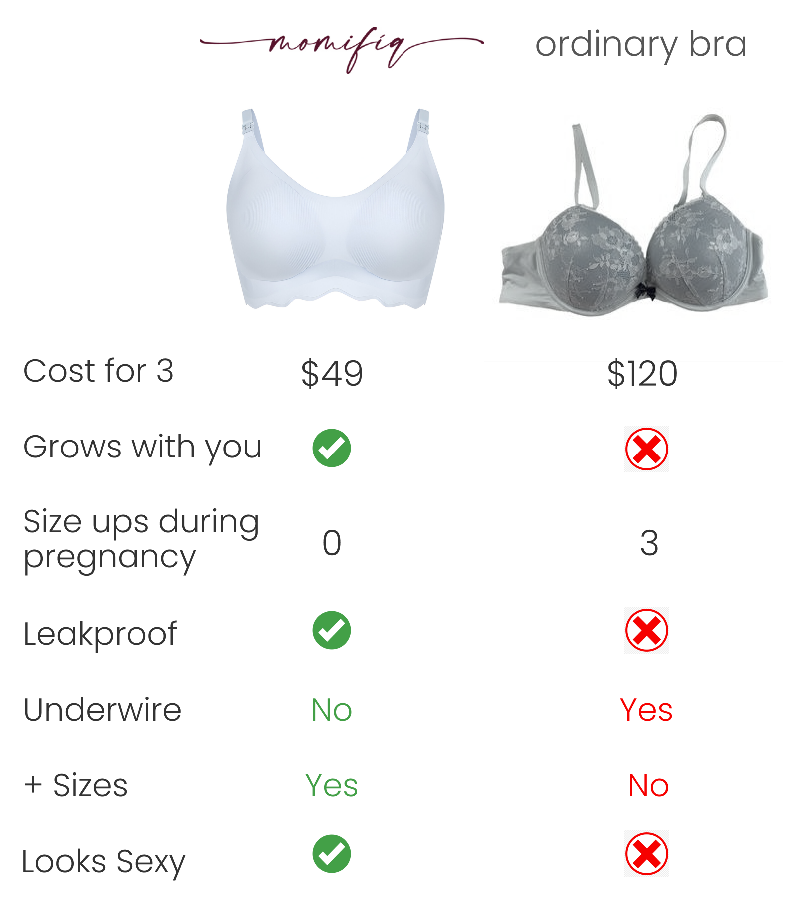 - Doesn't fit? Contact us via support@momifiq.com and we will provide you an address for shipping your bras back. We'll ship a different size immediately!